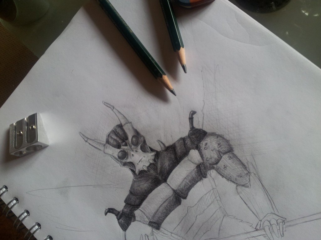 Das Volk könnte eine Art von telepathischer Kommunikation nutzen, ausgehend von der Königin. Stirbt die Königin dann ist es wie bei den Vampiren und die Armee hat einen Malus. Nur zerfallen sie nicht, sie leiden dann vielleicht unter „Blödheit“ oder eine andere Art von Sonderregel trifft zu. Es könnte eine Art Schwarmbewusstsein geben, wie „Macht durch Masse“ bei den Skaven. Natürlich hätten die Wesen auch eine Art von Zauberer, welcher ggf. die Möglichkeit hat Einheiten zur Metamorphose zu zwingen oder Bienenschwärme (Nicht Menschengroß sondern in der üblichen Größe) auf die Gegner zaubert, Honig- oder Spinnenwebfallen, die die Gegner ausbremst oder Geschosszauber wie „Der Stachel des Zorns“. Alles in Allem eine Idee die ich sehr interessant fände und frischen Wind in das Universum reinbringen würde. Ich zeichne nun weiter, vielleicht mach ich ja mal ein Fake-Armeebuch Cover und guck mal wie die Leute darauf anspringen 😉 und wer weiß, vielleicht können Dimi und ich ja mal ein paar Minis auf den Markt bringen, inklusive Codex. Ich mache die Illustrationen und Artworks und Dimi setzt die Jungs in 3D um, die Drucker dafür sind in 5 Jahren sicherlich so weit das man sich leicht eine Armee aufbauen kann!